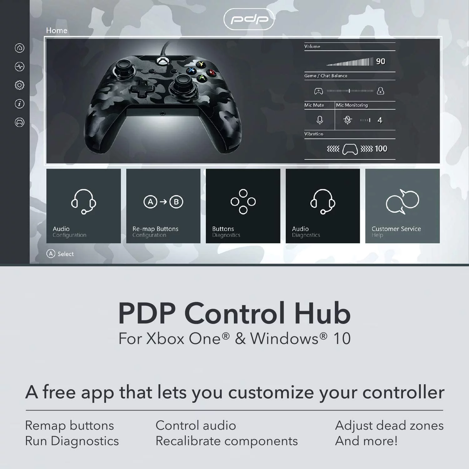 Drôtový ovládač PDP je kompatibilný s konzolami Xbox One, Xbox One X a Xbox One S a tiež ho pripojíte k počítaču s Windows 10. Potvrdená je aj kompatibilita s Xbox Series X. Elegantný dizajn s protišmykovým úchytom zaistí skvelé hranie, rovnako ako vibrácie a ovládanie hlasitosti 3,5 mm audio jack výstupu priamo na ovládači. Kábel je odpojiteľný. Ďalej ponúka dve programovateľné tlačidlá na zadnej strane ovládača a aplikáciu pre Windows, v ktorej možno premapovať jednotlivé tlačidlá.