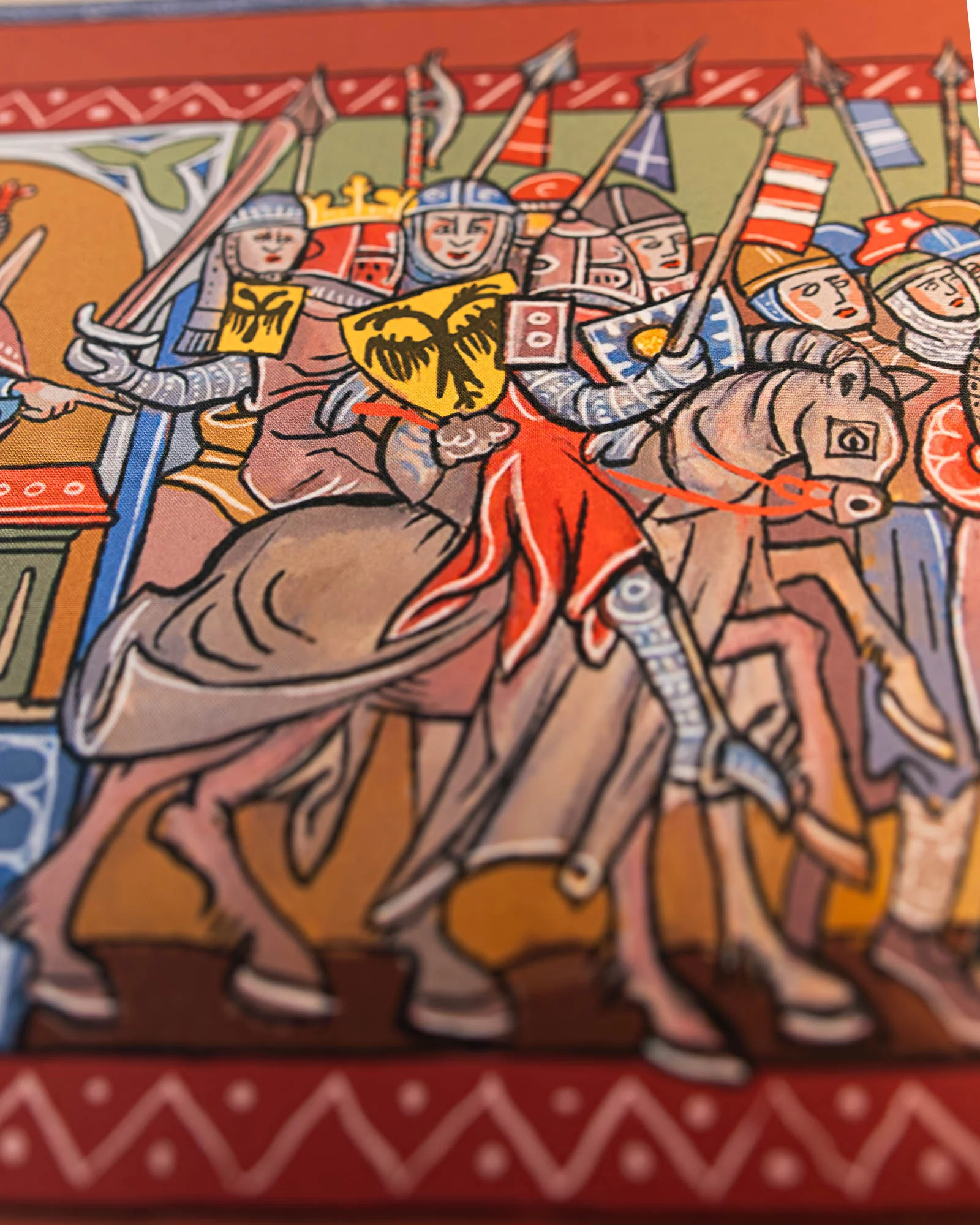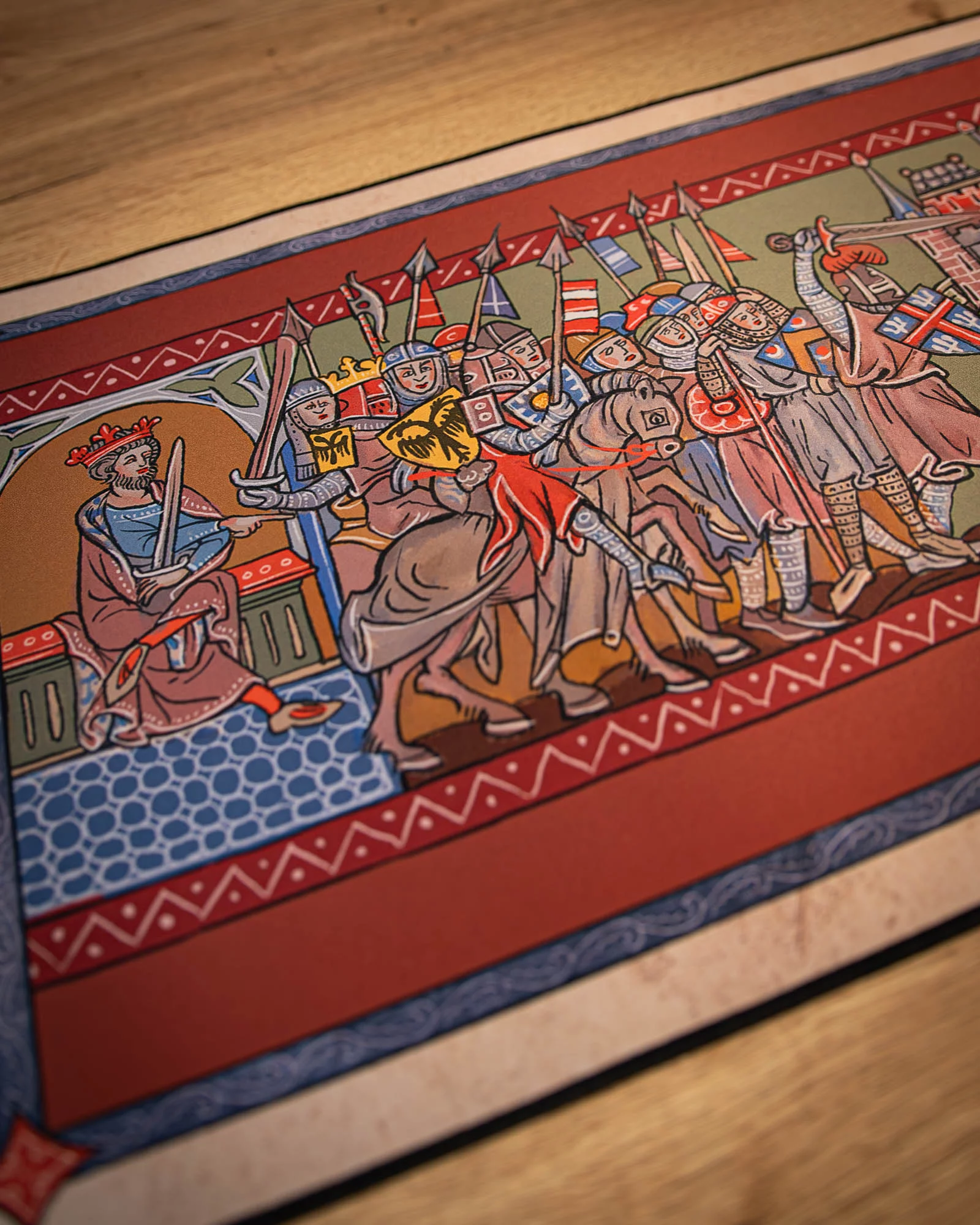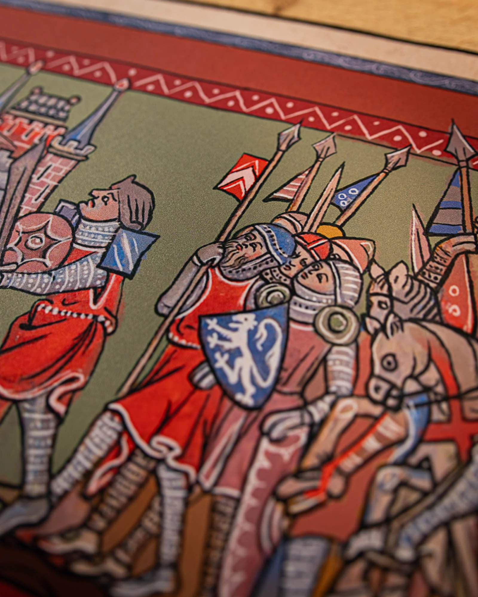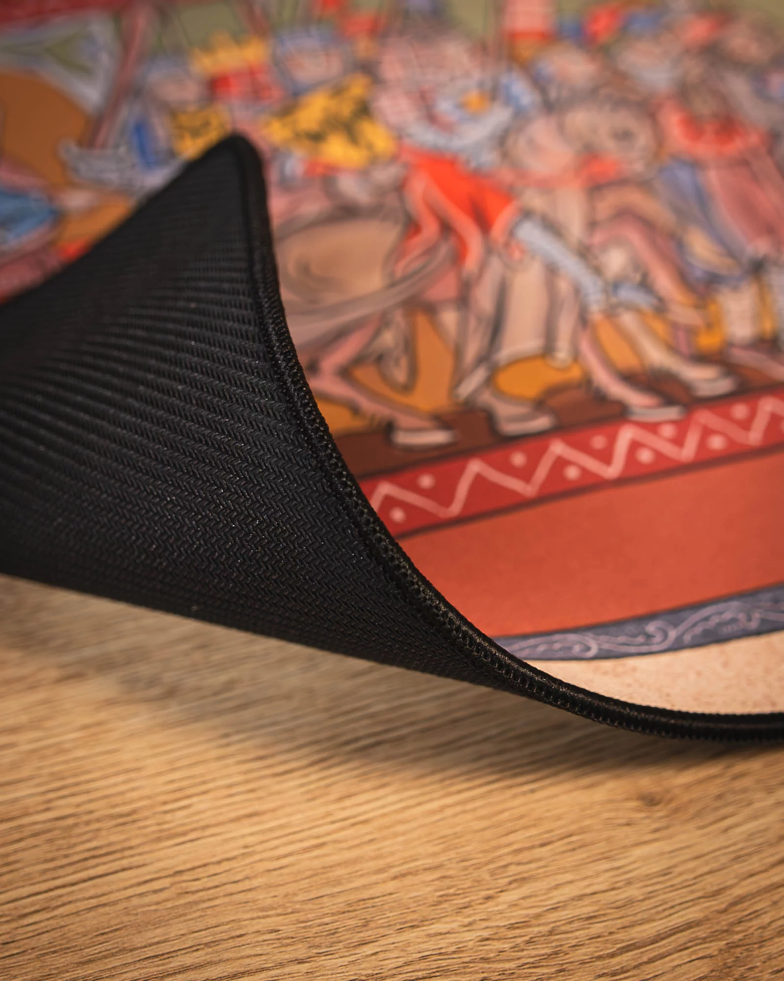 Kúsok stredovekého umenia priamo na vašom stole. Autentická iluminácia inšpirovaná dobou Kingdom Come: Deliverance II, kde sa hrdinovia a rytieri stretávajú pod kráľovským dohľadom. Stabilná, odolná podložka pre epické herné klania aj poddanské pracovné dni.