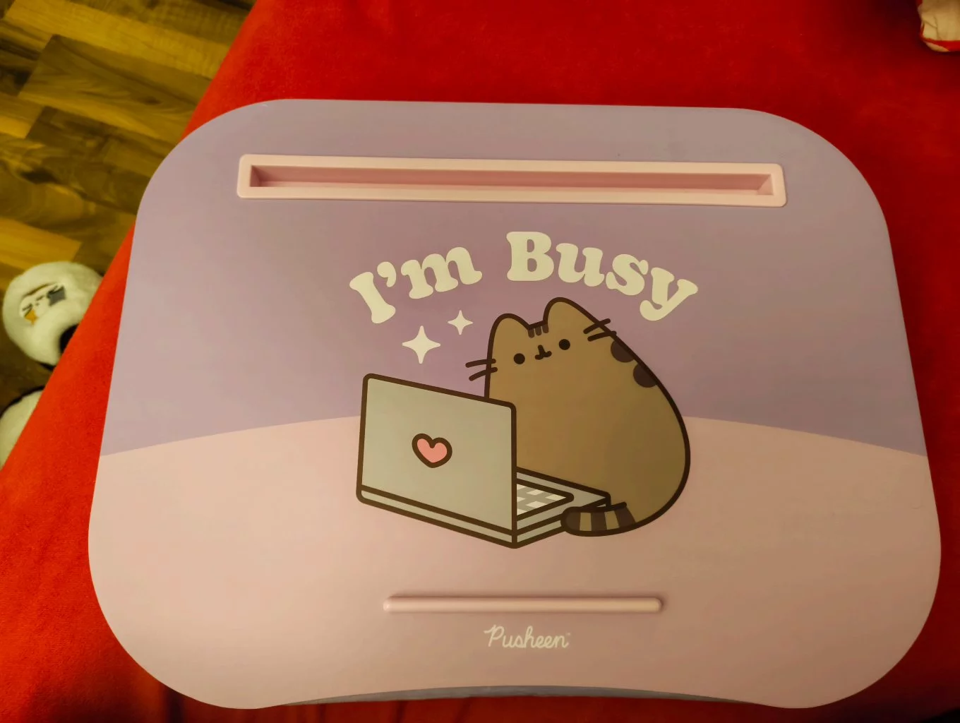 Absolútny must-have pre všetkých milovníkov mačičky Pusheen, vlastniacich notebook! Táto praktická podložka pod notebook je zároveň tiež taškou, v ktorej si svoj notebook môžete prenášať. Na podložke nájdeme zarážku na notebook, aby z nej nezosmykol a tiež obsahuje lištu, do ktorej môžete vložiť tablet obrazovku notebooku, ak ju môžete odpojiť alebo zariadenie preložiť.
