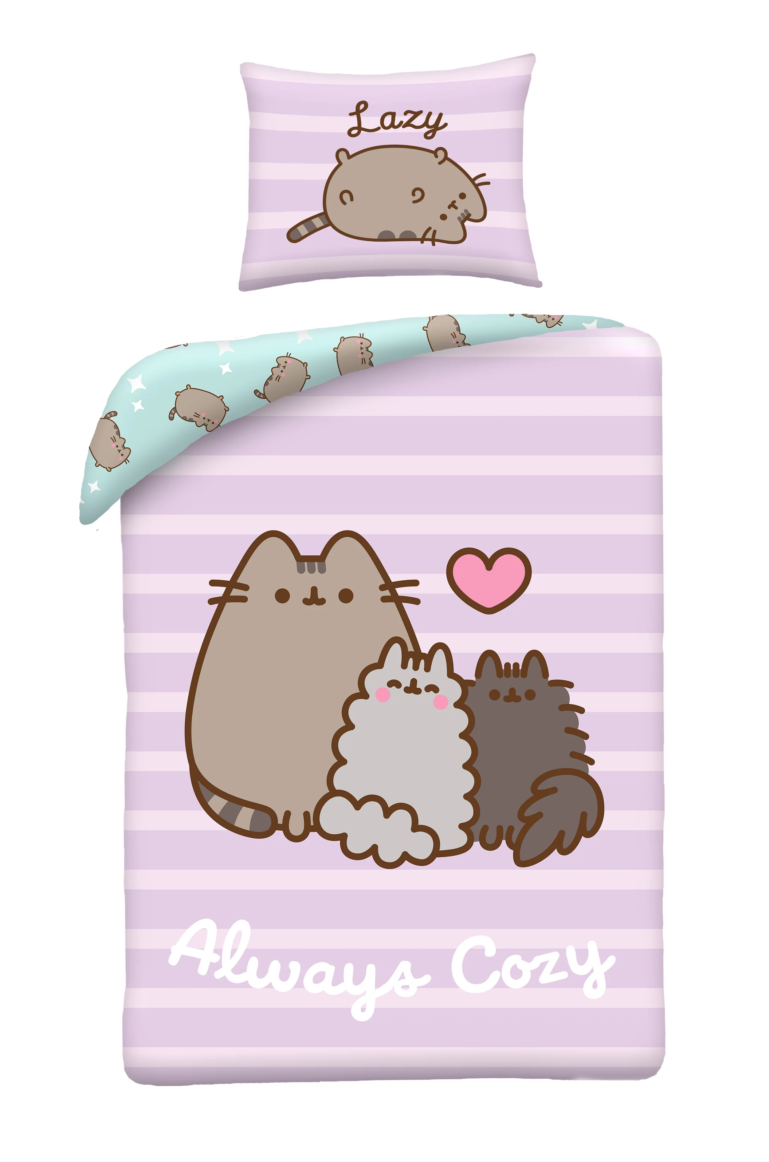 Jemné prúžky, srdiečko a motív „Always Cozy“ vytvárajú dokonalú atmosféru pokoja a tepla domova. Ideálna voľba pre všetkých milovníkov Pusheen, ktorí chcú zaspávať s úsmevom a prebúdzať sa do sveta plného pohody.