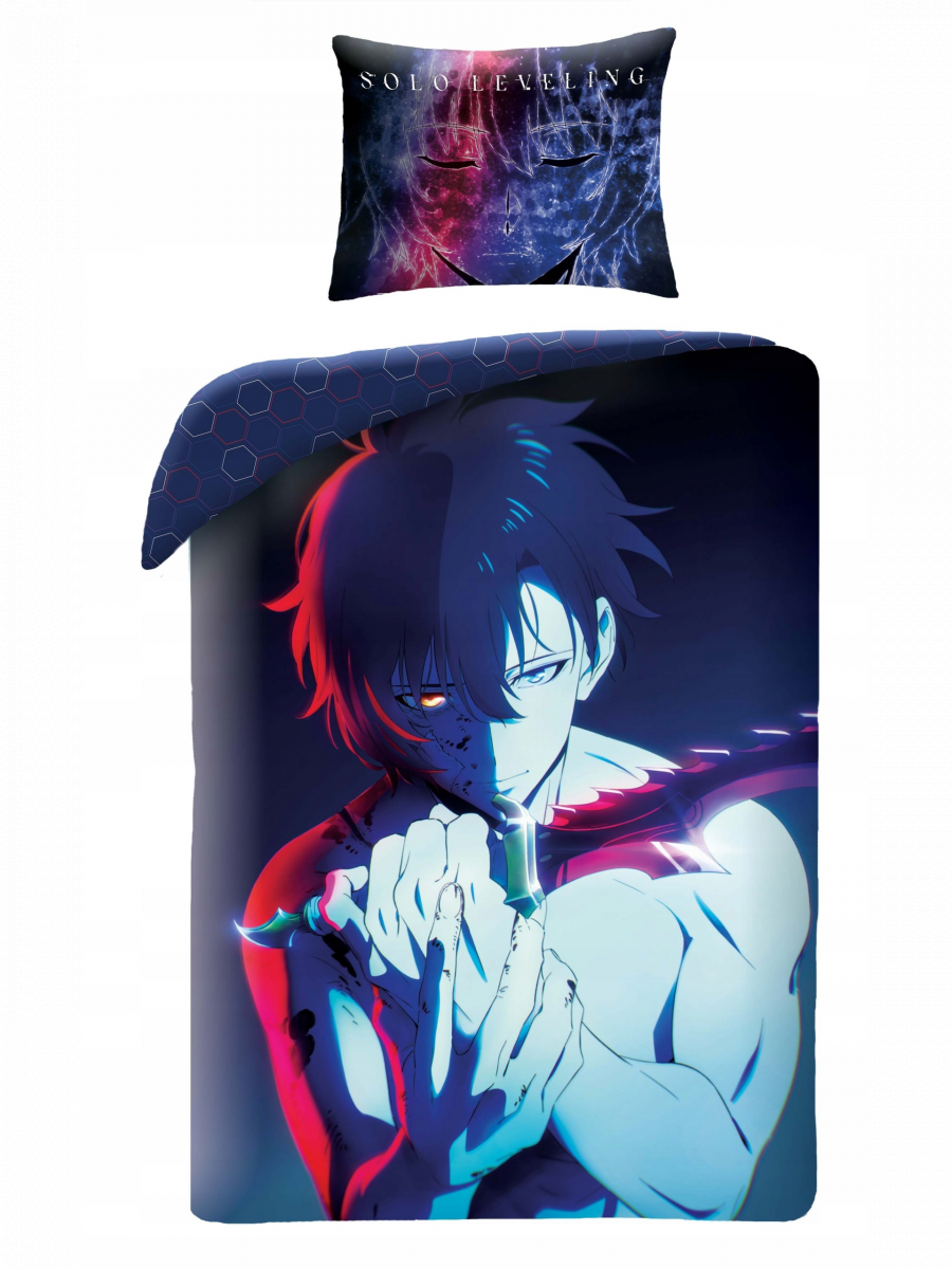 Temný dizajn s ikonickým hrdinom zachytáva silu i odhodlanie, ktoré z neho robia najsilnejšieho z lovcov. Perfektná voľba pre všetkých fanúšikov anime a manhwy Solo Leveling, ktorí chcú zaspávať v štýle svojho obľúbeného hrdinuRozmery: poťah na deku (140 x 200 cm), poťah na vankúš (70 x 90 cm)