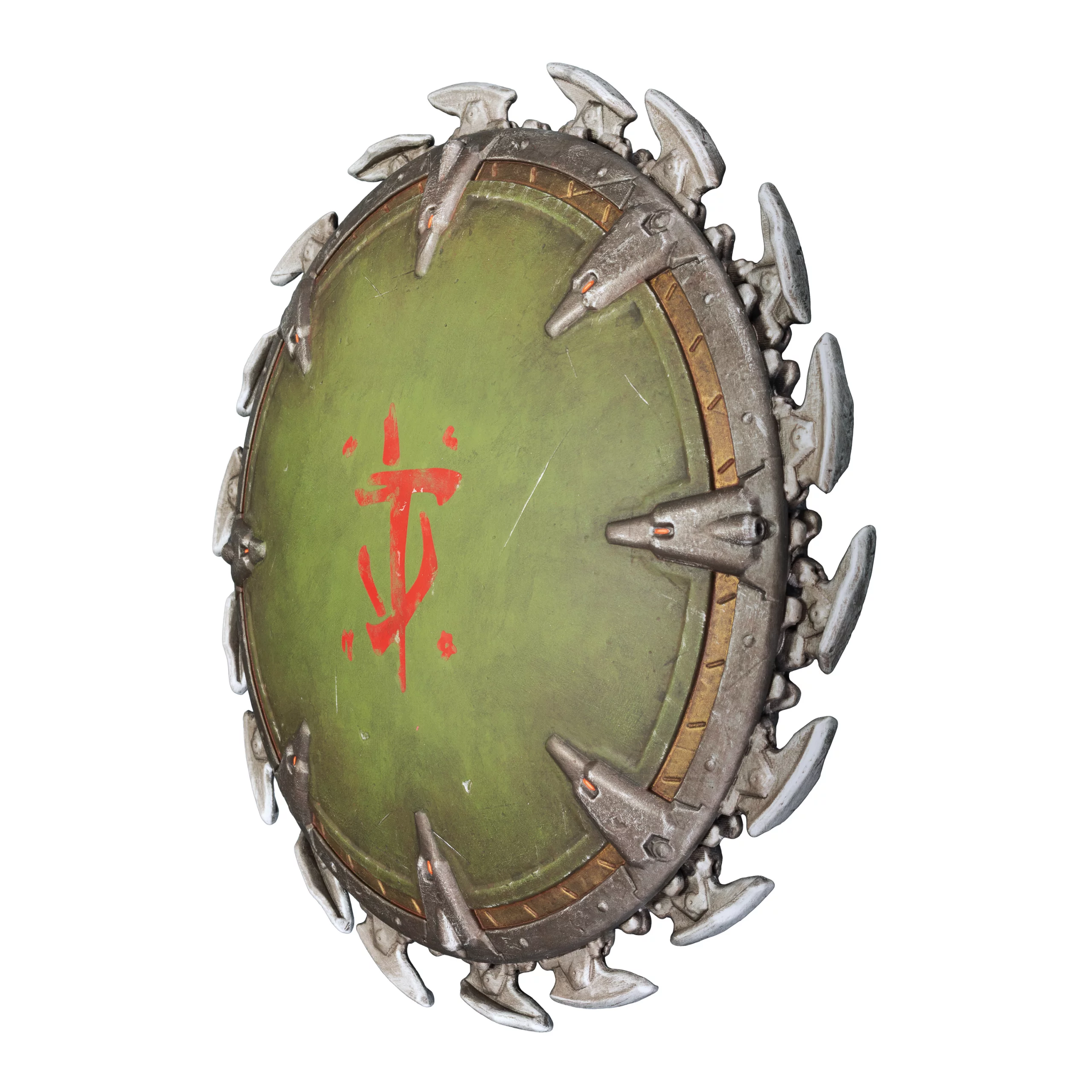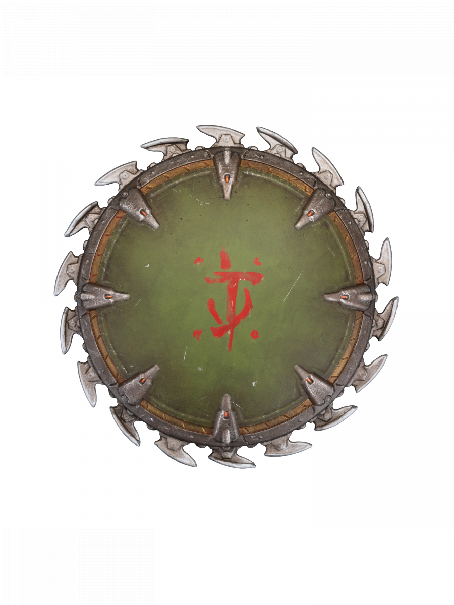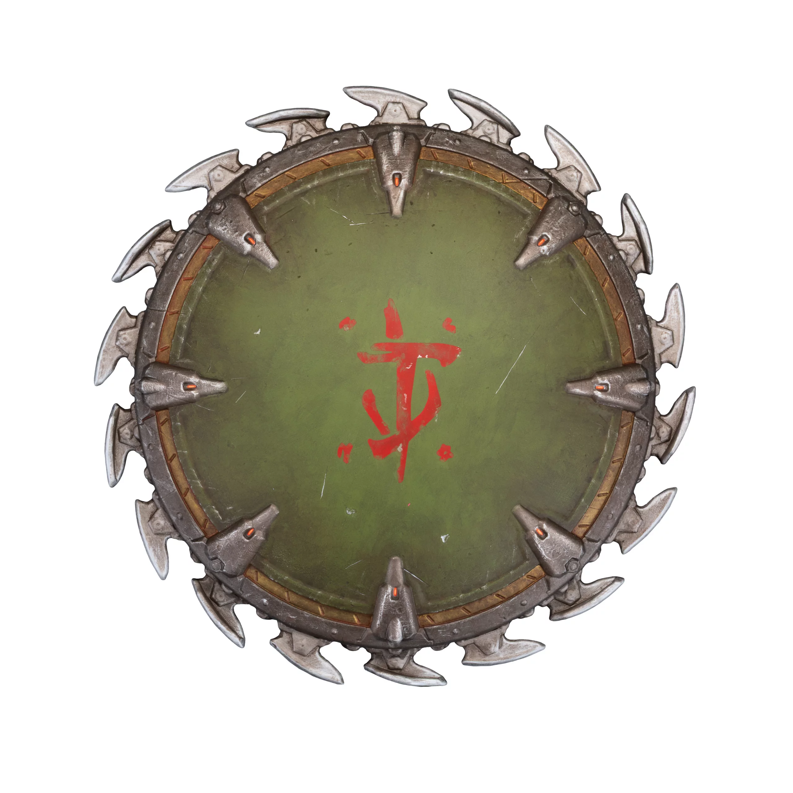 Ikonická Shield Saw z DOOM: The Dark Ages ako detailná nástenná replika, ktorá okamžite pritiahne pozornosť.