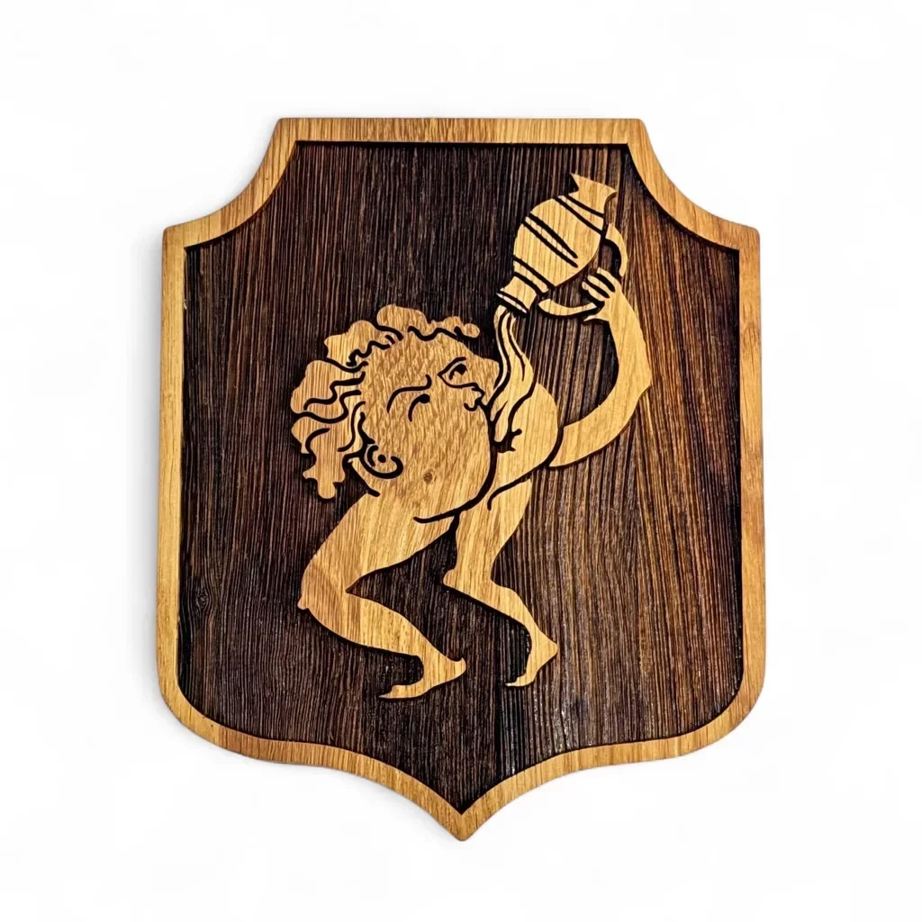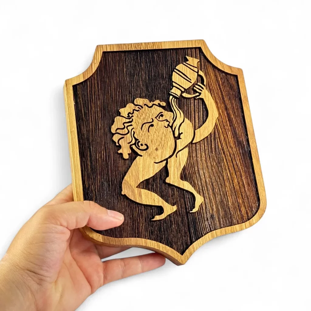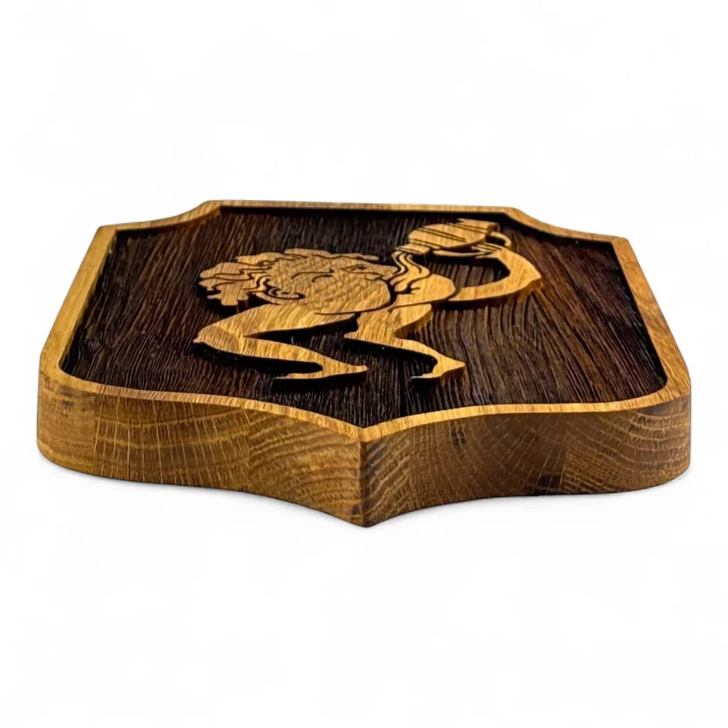 Drevená nástenná ozdoba v tvare vývesného štítu s logom Kingdom Come: Deliverance 2 je vyrobená z dubového dreva. Motív je reliéfny, drevo je vypálené do hĺbky cca 3-4mm.