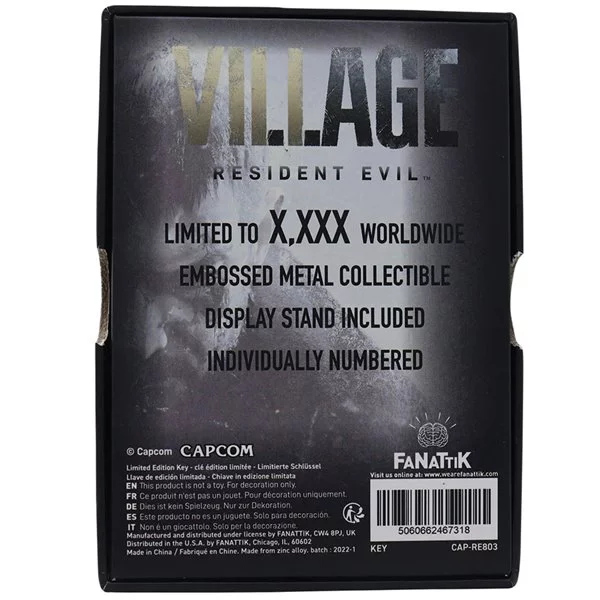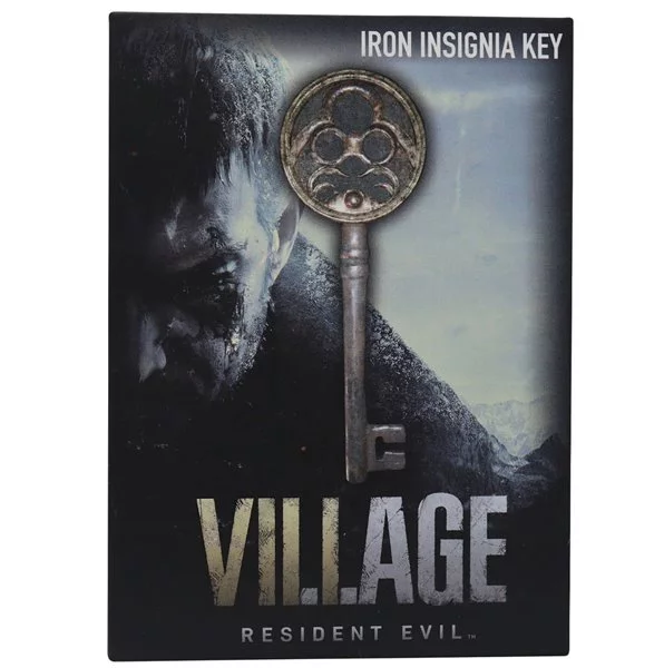 Verná kovová replika ikonického kľúča z Resident Evil Village, ktorá poteší každého fanúšika hororovej série. Má embosované detaily, autentický vzhľad a pôsobí, akoby bola práve vytiahnutá z temných kútov dediny.