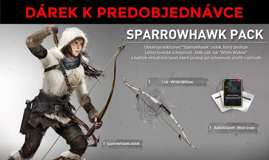Smrtiace hrobky – preskúmajte rozľahlé starobylé priestory prešpikované smrtiacimi pascami, riešte zaujímavé hlavolamy s využitím prvkov v prostredí a lúštite starobylé texty; Žena vs. Divočina – Podmaňte si svet, ktorý si zúrivo chráni svoje tajomstvá, prekonajte drsné prostredie, čeľte nebezpečnej zvery a skúmajte rozľahlé interaktívne prostredie; Partizánsky boj – Využite prostredie pre svoj prospech, šplhajte po stromoch a potápajte sa pod vodu, aby ste nepriateľom unikli, alebo ich zneškodnili. Upravte si Larinu výstroj, zbrane a muníciu, aby vyhovovala vášmu štýlu hry.