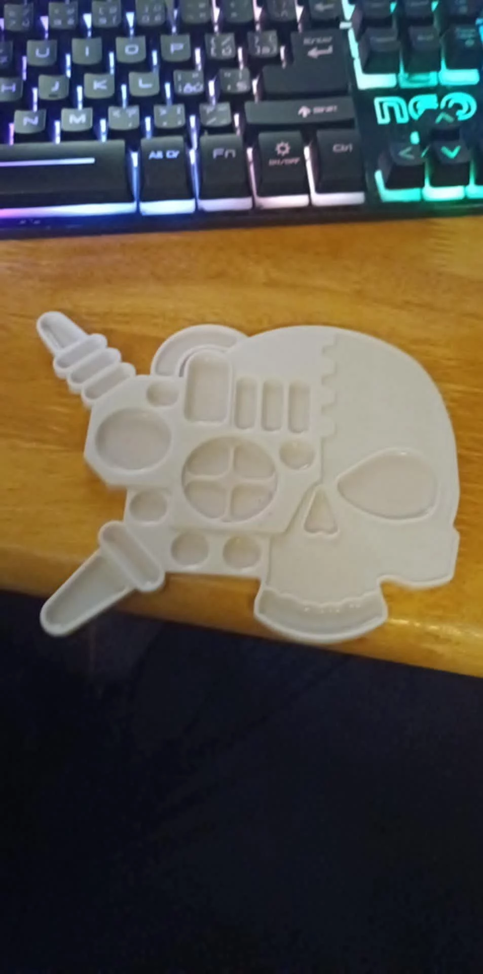 Paleta na maľovanie inšpirovaná Servo-Skull je vyrobená z mäkkého umývateľného silikónu, ktorý je udržateľnou alternatívou k jednorazovým paletám.