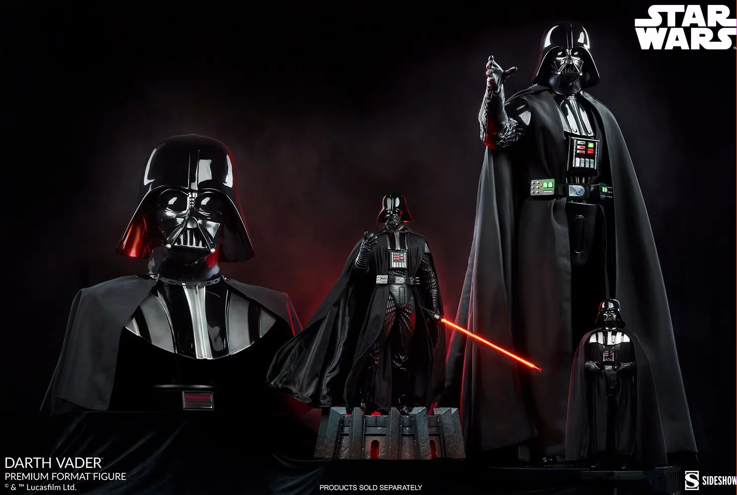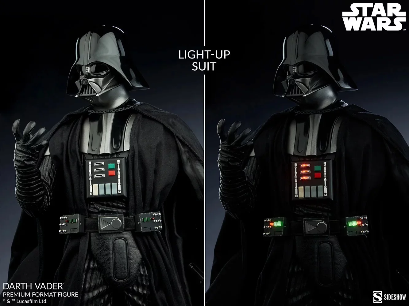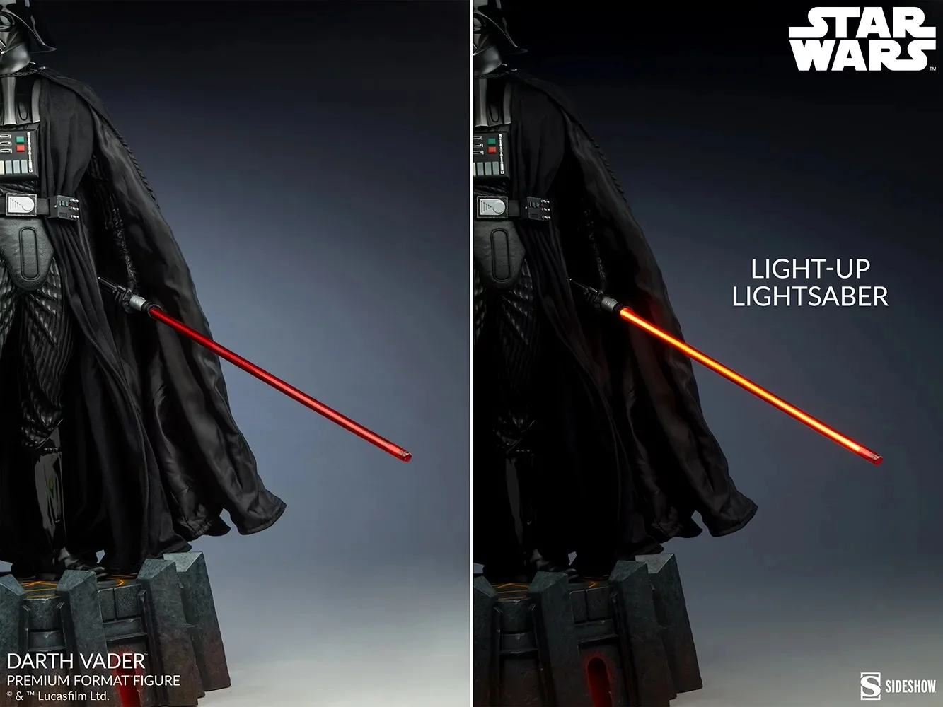 Jedinečne spracovaná socha s podobou samotného Darth Vadera od umelcov zo Sideshow! Socha ponúka obdivuhodné množstvo detailov - základ z polystónu dopĺňajú látkové elementy a socha sa môže pýšiť aj svetelnými efektmi (lightsaber, elektronika na obleku). Socha sa potom vyníma na podstavci, ktorý je vymodelovaný do podoby Vaderovej pevnosti na planéte Mustafar. Súčasťou balenia sú aj vymeniteľné ruky, ktoré umožňujú sochu vystaviť v rôznych pózach.