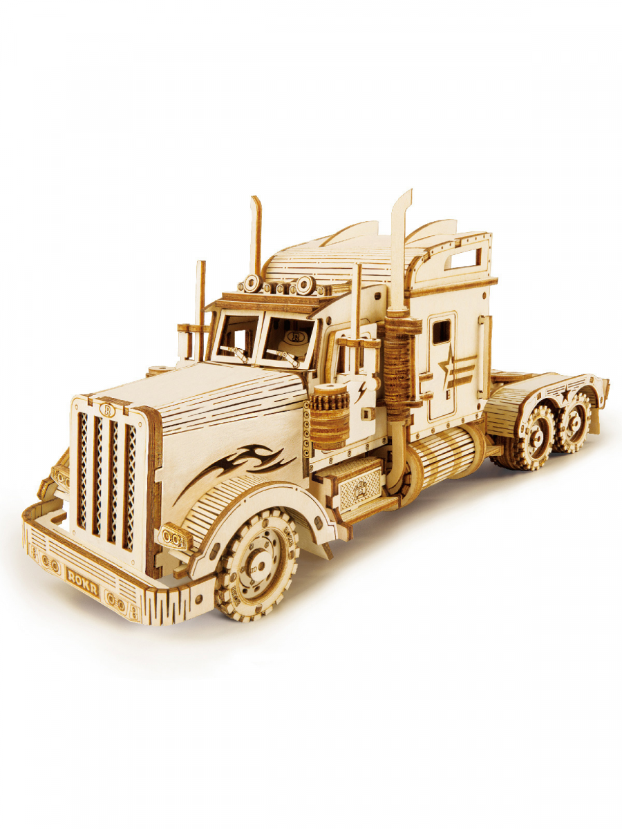 Drevená Stavebnica modelu ťažkého ťahača je inšpirovaná ťažkými nákladiakmi, typickými pre cesty v USA. Krásny robustný dizajn poteší oko, ale nie je určite jednoduchý na zostavenie. Súčasťou balenia od spoločnosti RoboTime je preto veľmi detailný návod a všetko potrebné k zostaveniu.