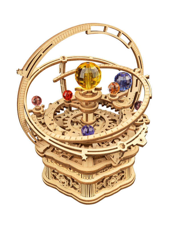 Kúzlo hviezdnej oblohy zachytené v pohybe. Drevená stavebnica Starry Night vás vtiahne do sveta ozubených kolies, drahokamovo žiariacich planét a elegantných orbit, ktoré sa po zostavení roztancujú v harmonickom rytme.