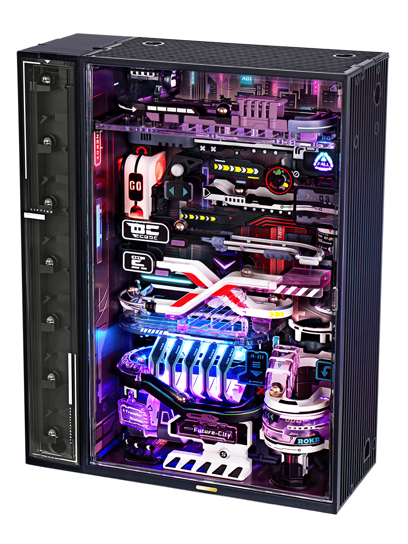 Ide o 3D puzzle v podobe miniatúrneho domu s guľôčkovou dráhou v výraznom cyberpunkovom štýle, s celkovou dĺžkou trate približne 174 cm. Po vhodení guľôčok do otvoru prechádzajú mestom, samovoľne sa kotúľajú zhora nadol vplyvom gravitácie, potom sú pomocou výťahu vyzdvihnuté späť na vrchol a celý proces sa znova opakuje.Veľkosť: 180 x 77 x 231 mm