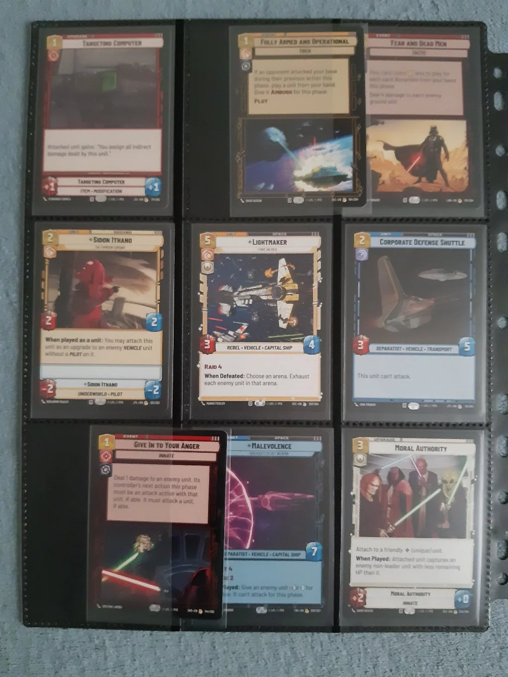 Tento arch je velmi kvalitní, hladký na dotek, ale trochu méně průhledný. Karty dobře padnou a nevypadávají.