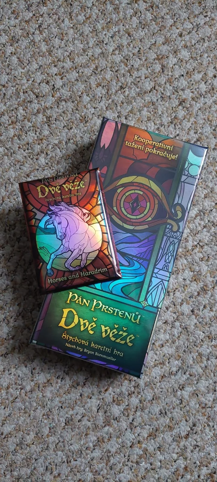 Vráťte sa do úchvatného sveta Stredozeme v štychovej kartovej hre! Smíšek a Pipin sú unesení skretmi, zatiaľ čo Frodo nesie Prsteň k Hore osudu. Vypravte sa s Frodon a Samom do Mordoru a s Aragornom a jeho spoločníkmi do Fangornského lesa a Rohanu, spolupracujte, múdro zahrávajte svoje karty a plňte úlohy všetkých postáv.