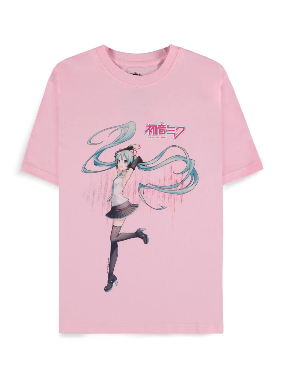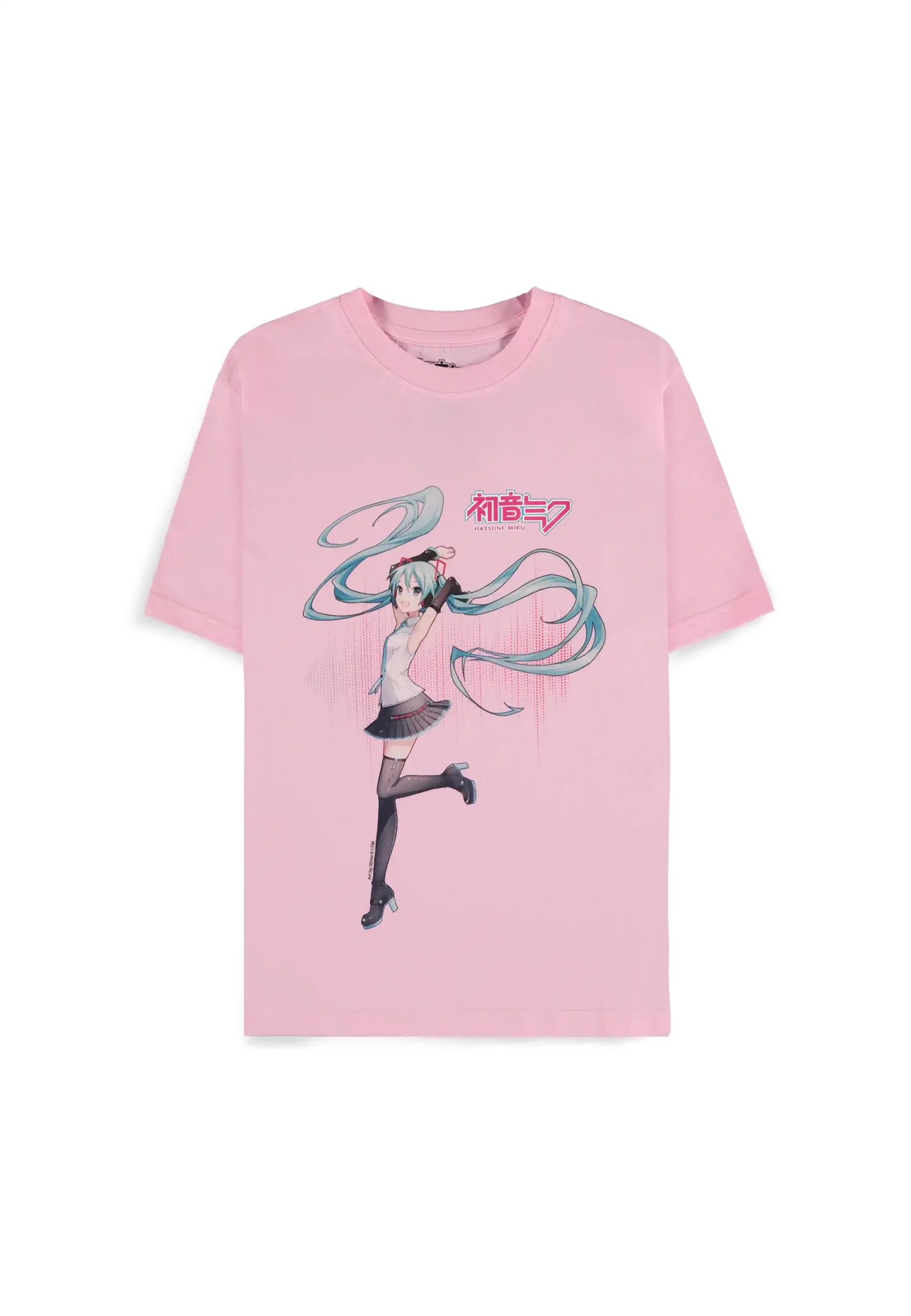 Roztomilé ružové tričko s legendárnou virtuálnou speváčkou Hatsune Miku, ktorá svojím štýlom i energiou rozžiari každý outfit.