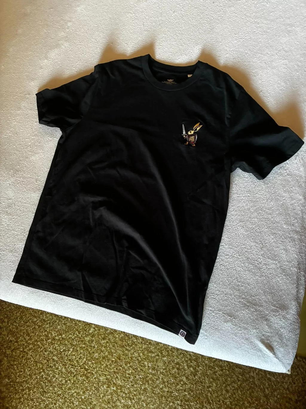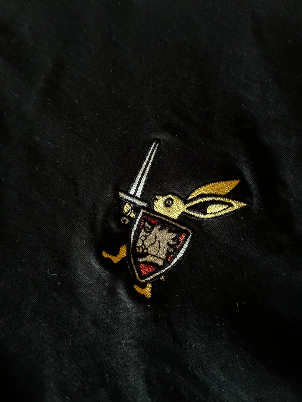 Odvážny zajac vyráža do boja s erbom slávneho rodu… teda vlastne vývojárskeho tímu Warhorse Studios. Roztomilý, ale nebojácny zajac je vyšitý formou efektnej výšivky, ktorá vydrží aj ten najdrsnejší šermiarsky súboj. Na chrbte nájdete plné logo Warhorse – autorov stredovekého RPG zo slovenských luhov a hájov, Kingdom Come: Deliverance II.