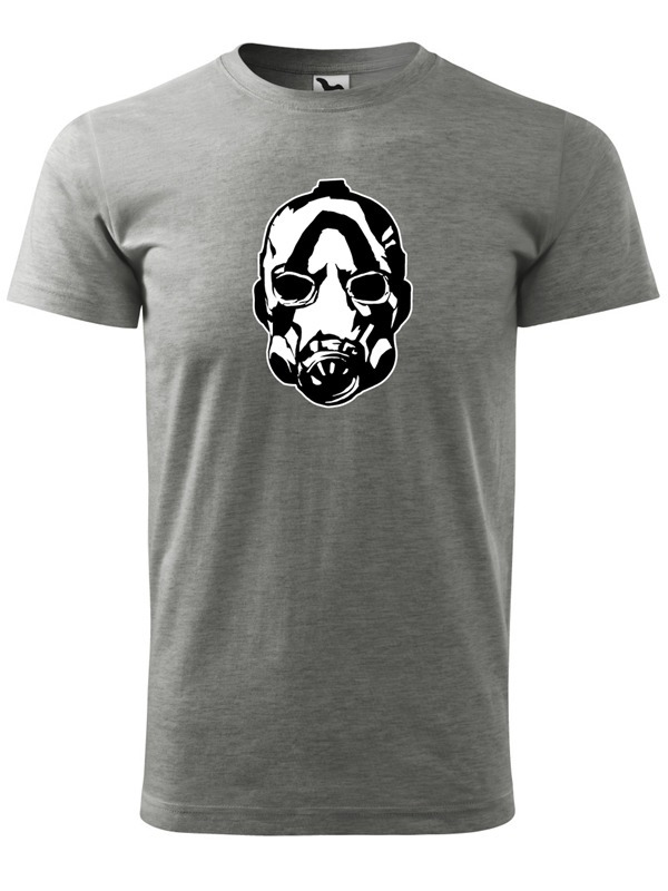 Krásne šedé tričko z kvalitného materiálu a potlačou Psycho Mask na hrudi i za krkom, pre fanúšikov príbehov odohrávajúcich sa napríklad na planéte Pandora.
