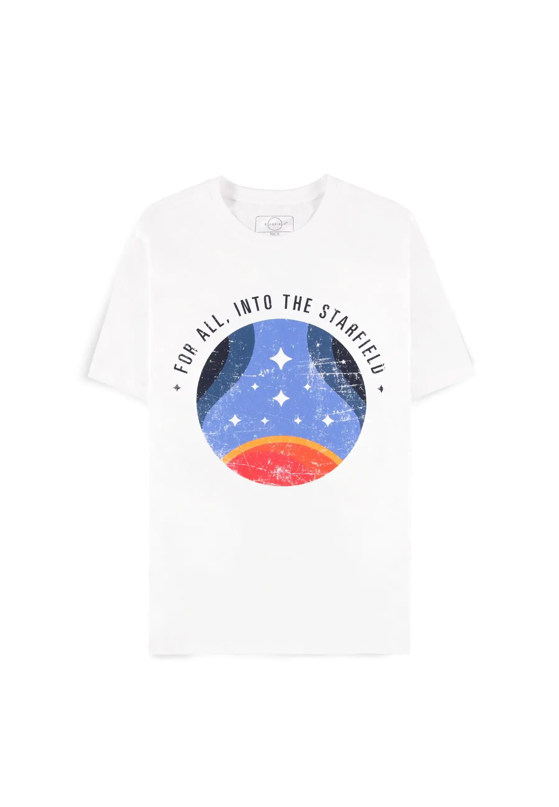 Minimalistické biele tričko inšpirované hrou Starfield prináša do vášho šatníka nádych vesmírneho dobrodružstva.