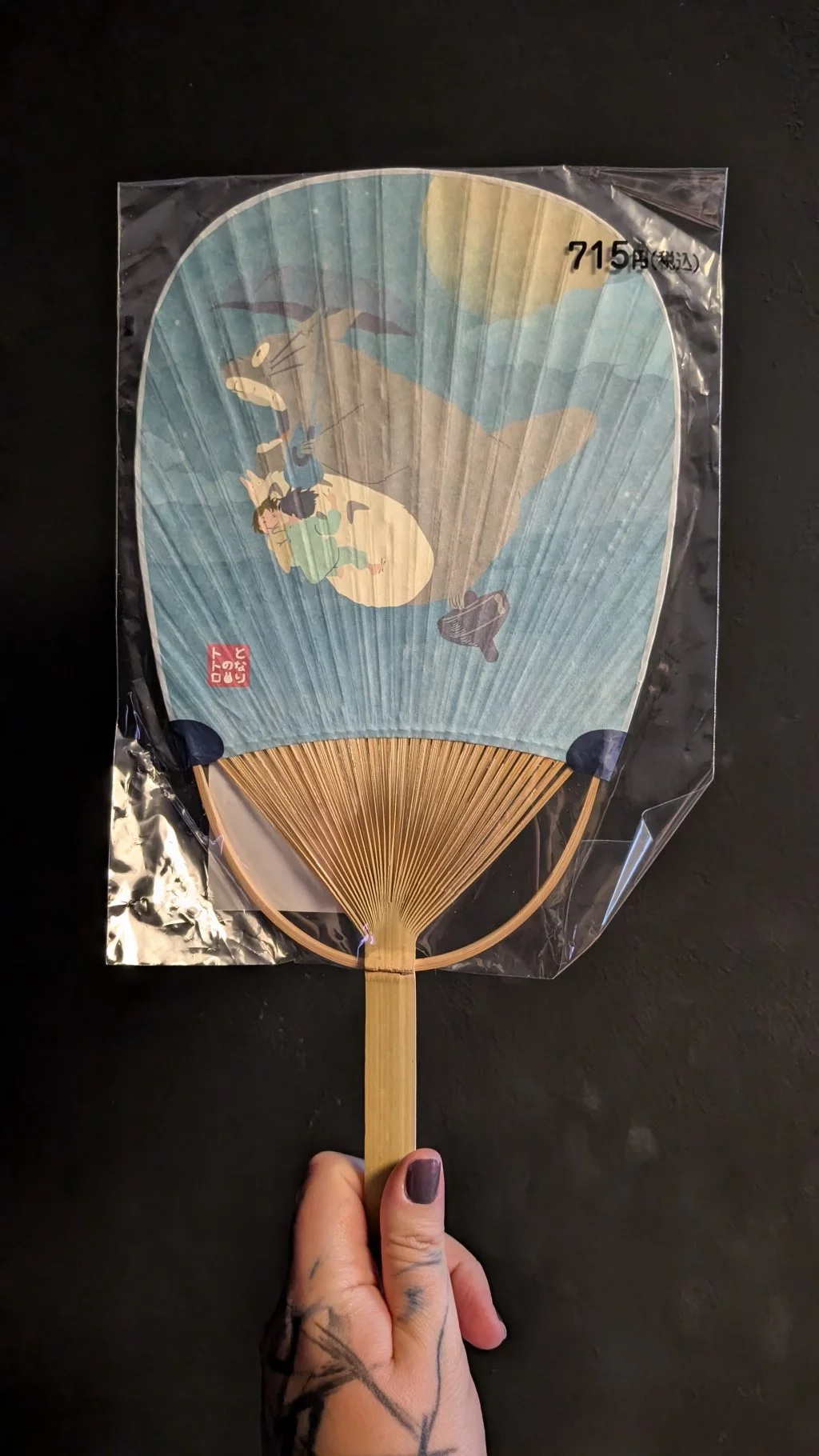 Štýlový obojstranný vejár s motívom Totoro Flying z animovaného filmu Môj sused Totoro (My Neighbor Totoro) Štúdia Ghibli.Materiál: papier, bambus