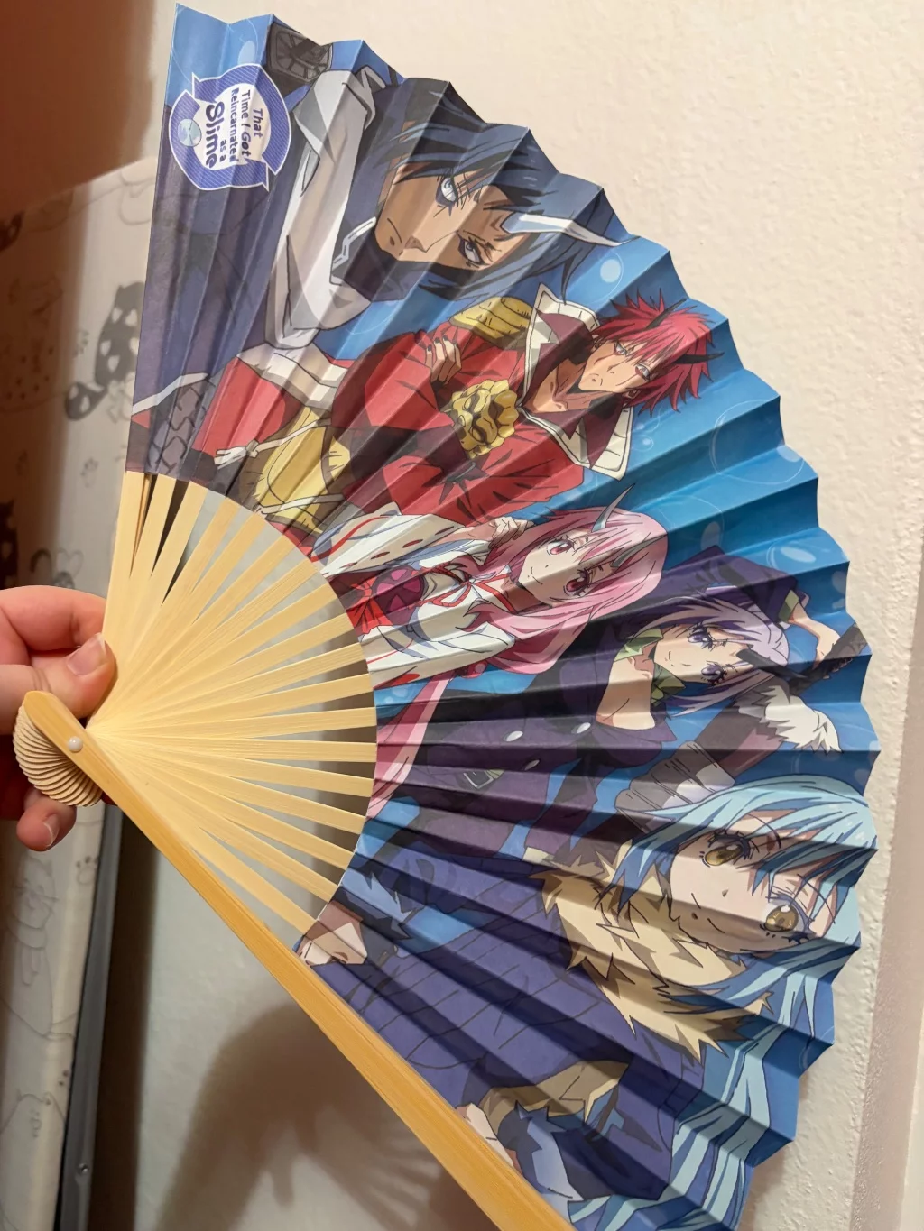 Štýlový obojstranný vejár s bandou z anime That Time Aj Got Reincarnated as a Slime.