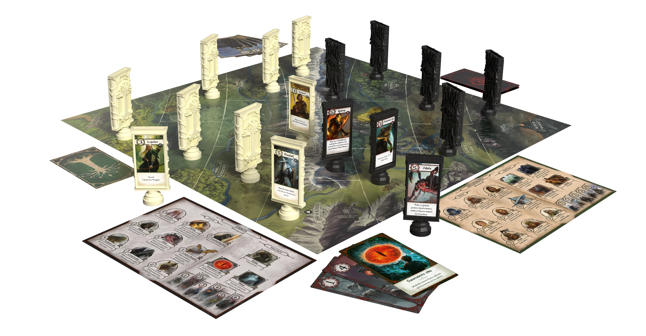 NEĽÚTOSTNÉ SÚBOJEAkonáhle sa postavy oboch strán stretnú v rovnakom regióne, dochádza k súboju. Ten kombinuje silu postáv, ich špeciálne schopnosti a tajnú voľbu bojovej karty. Vzniká tak napínavý, rýchly a pritom taktický stret, ktorý často rozhodne o ďalšom vývoji celej partie. Každá hra je iná vďaka variabilite rozmiestnenia aj tomu, ako hráči pracujú so svojimi kartami.OSUD STREDOZEME VO VAŠICH RUKÁCHSpoločenstvo sa snaží dostať Froda až k Hore osudu. Sauronove sily sa naopak pokúšajú preniknúť do Kraja alebo Froda zničiť. Obe strany majú úplne odlišné podmienky víťazstva, čo vytvára dynamické a asymetrické strety, pri ktorých rozhoduje správne načasovanie a schopnosť čítať protivníka.
