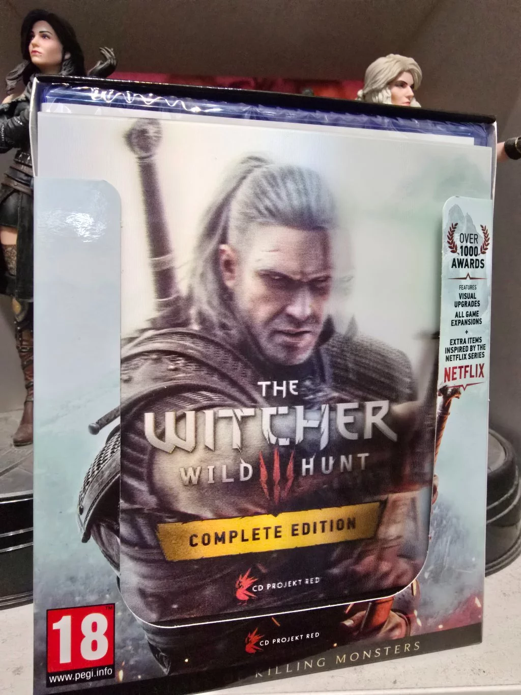 Hra, která se mi zatím (i přes tu spoustu let) vyhýbala ve fyzické verzi ve sbírce. Tuto verzi nešlo snad ani nechat být. Kromě klasické PS5 kompletní edice Zaklínače 3 se všemi DLC a návdavky, za své orény obdržíte také pěkně vyvedený steelbook a ne úplně malou magnetickou lentikulární kartu, kterou můžete připnout na PC case, lednici, vinotéku :-)
