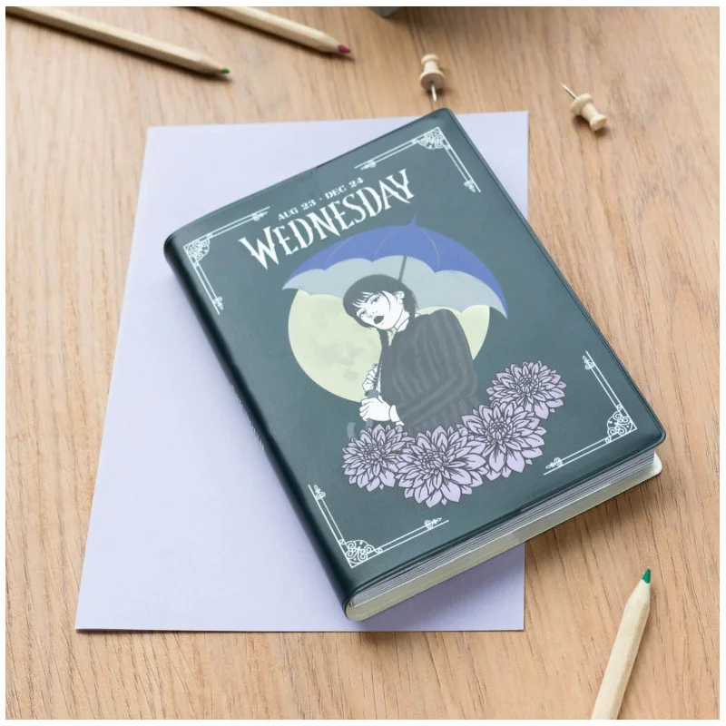 Zápisník od augusta 2023 do decembra 2024 pre všetkých fanúšikov netflixovského megahitu Wednesday. Krásny zápisník v pevnej väzbe s 248 stranami a stuhovou záložkou. Super darček pre každého, kto si obľúbil tento seriál.Rozmery: 11 x 15,5 cm